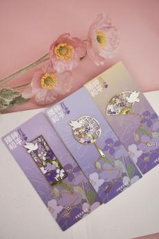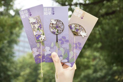 将和平鸽、紫金草不同的外部轮廓造型与金属镂空工艺相结合,使书签的质感与美感并存。
