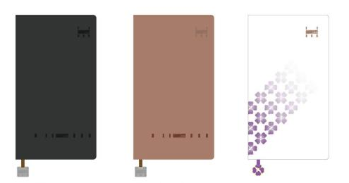 以馆标、城砖、紫金草作为封面图案,采用软皮封面,内页以金属馆标、紫金草挂饰作为书签,黑色、咖色体现庄严肃穆,白色紫金草款清新简洁。