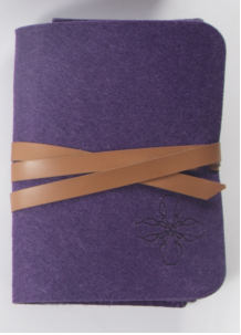 对“和平之花”紫金草的造型进行简化设计,作为logo烙印在毛毡数据包的表面。