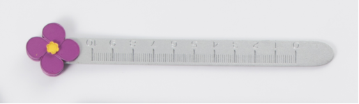 此款产品为不锈钢尺子书签,可以作尺子,也可以作书签,头部紫金草为扣件,可以打开。