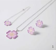 运用“和平之花”紫金草作为设计元素,3款饰品分别为项链、手链、耳钉,采用银质烤漆工艺。