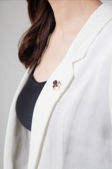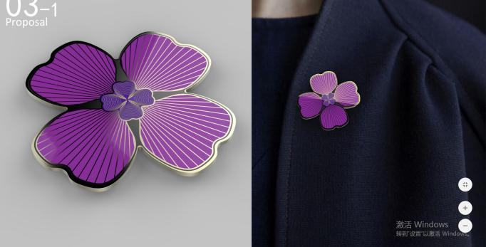 运用“和平之花”紫金草作为设计元素,花型以中间微折,呈现立体效果,金属材质。