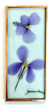 以天然二月兰制成干花,用玻璃锡焊工艺包边,可作为装饰品。