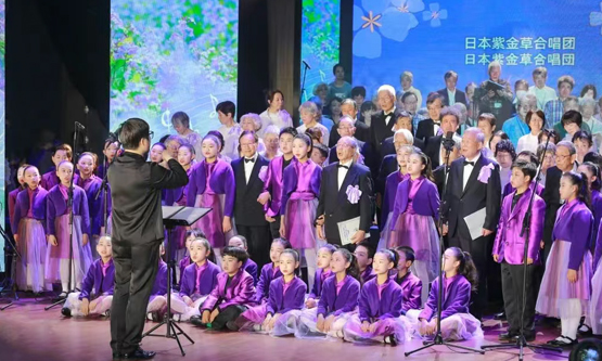 Chinese and Japanese Zijin Grass Choirs perform together to sing the voice of peace.
