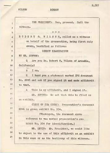 The transcript of the trial of the International Military Tribunal for the Far East (extract), which contained Wilson’s testimony in court to the Nanjing Massacre