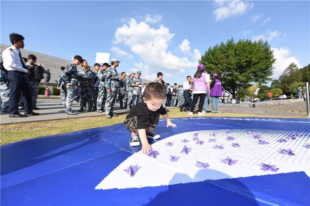 On the afternoon of September 21, the International Day of Peace, the theme event “Sing out Loud” was held at the Memorial Hall of the Victims in Nanjing Massacre by Japanese Invaders. All the members of the Purple Grass Choir sang songs Let the World be Full of Peace(Rang Shi Jie Chong Man He Ping) and Ode to Peace. The choir members, student representatives and the audience sang the song Let the World Be Full of Love (Rang Shi Jie Chong Man Ai) together.