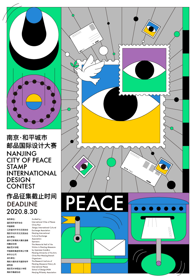 In 2017, Nanjing formally passed the application and became the 169th international peaceful city, and also the first city in China to join the organization. In order to spread the concept of peace, gather the strength of international peace, and shoulder the responsibility of international peace city, The Memorial Hall of the Victims in Nanjing Massacre by Japanese Invaders, China Post Nanjing Company and Nanjing University of the Arts jointly held the Stamp International Design Contest of "Nanjing · City of Peace"