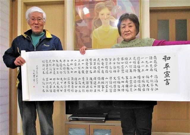 Yamauchi Masayuki and his wife Yamauchi Shizuyo, representatives of the Okunoshima Poison Gas Research Institute wrote: “We thank the Memorial Hall for the Declaration of Peace. It's a wonderful piece of work and we'll hang it at home and treasure it. Kudos to the Director and all staff of the Memorial Hall!"