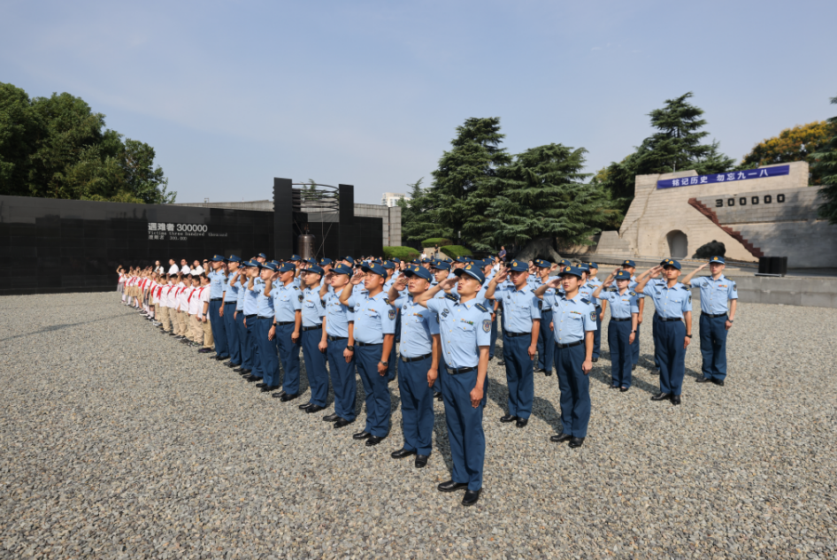 At 9:18 am on September 18, the Memorial Hall held the ceremony of raising the national flag and singing the national anthem at the Public Memorial Square to commemorate the 92nd anniversary of the September 18 Incident that marked the start of Japan’s invasion of China. Some descendants of Nanjing Massacre survivors, teenagers, military officers and soldiers, and Memorial Hall staff members attended the ceremony. The attendees stood facing the national flag to express their reverence, with those in hat taking off their hats, and looked up in a salute to the flag while the Young Pioneers saluted the flag in their own way. The attendees also sang the national anthem together.