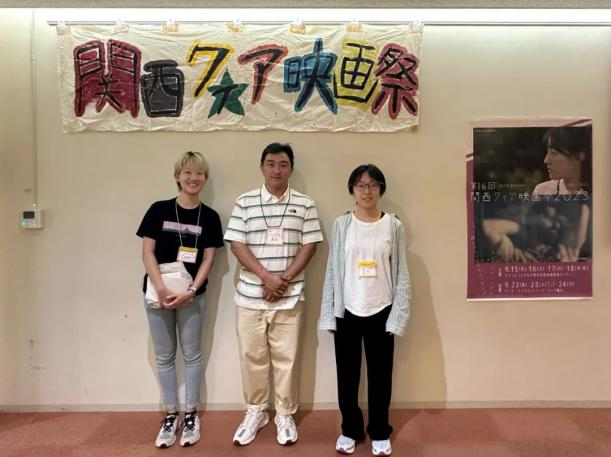 Director Guo Ke and two Chinese students studying in Japan, including Qi Huiyuan (first from right). Photo courtesy of Guo Ke