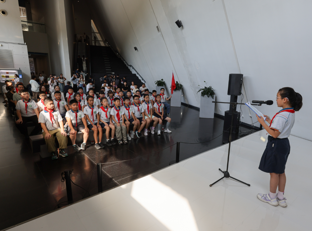 Having grown up hearing her grandmother's painful experiences during the Nanjing Massacre, Xia Yuan now carries on the legacy as a historical witness, alongside her 14-year-old son. "As a descendant of a survivor, I must pass on my ancestors’ memories so that more people understand and remember this history!" Today, the memorial also held a reading of Letters from Zhao Yiman in the visitor lounge, where students from Nanjing Xiaozhuang College's First Experimental Primary School recited family letters of revolutionaries to the audience, drawing strength from the spirit of resistance.