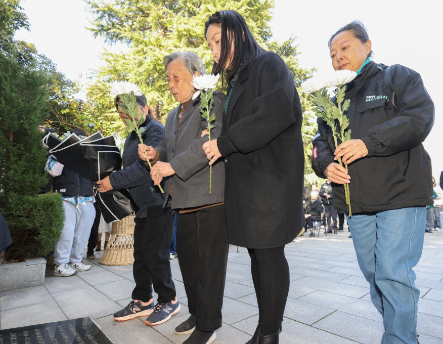 In these early days of winter, boundless grief filled the air in front of the "Wall of Tears". On December 1, the family memorial service for the Nanjing Massacre victims was held in front of the "Wall of Tears" at the Memorial Hall of the Nanjing Massacre Victims (by Japanese Invaders). Nanjing Massacre survivors, descendants of survivors, representatives of victims' families, and youth representatives stood solemnly with chrysanthemums to pay homage to their loved ones and compatriots who perished 87 years ago.