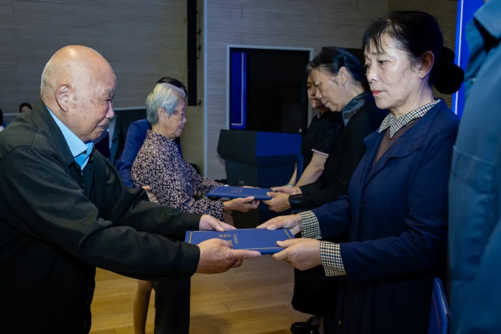 On the Double Ninth Festival in 2024, Ai Yiying (second from left) presented certificates to the third group of Historical Memory Inheritors of the Nanjing Massacre