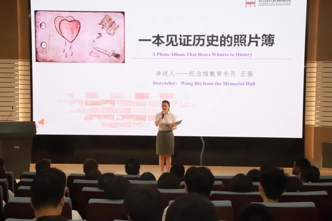 Our memorial's education officers, Wang Bei and Wang Bei, along with student representatives from Nanjing Foreign Languages School, Zou Leying, shared stories behind the "Nanjing Massacre Archives" at the scene. Zijin Grass international volunteers Semi and Naf read excerpts from The Diaries of John Rabe and The Diaries of Minnie Vautrin in English, transporting those present back to the dark and tragic times of that period.
