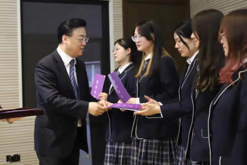 記念館の周峰館長は学生たちに「平和の使者」の証明書を授与した