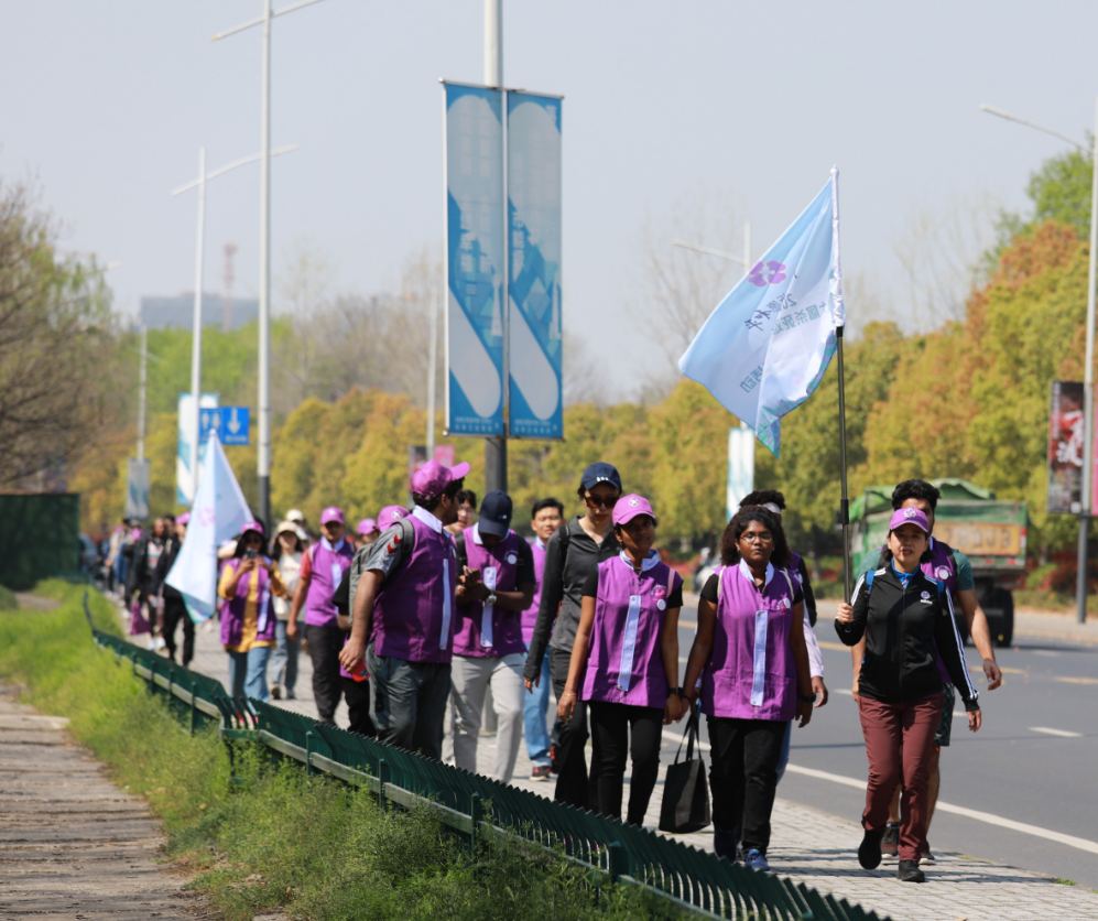 午前11時30分、徒歩方陣は侵華日軍南京大虐殺燕子磯江灘の遇難同胞記念碑に来た。南京大虐殺期間中、ここは日本軍の南京における主な集団虐殺地の一つで、川を渡れなかった難民と武装が解除された中国人兵士が合計五万人余り遇難した。記念碑の前でみんな黙祷して亡くなった人を偲んだ。