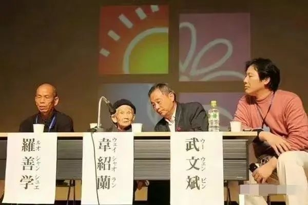 上の写真は2000年日本軍「慰安婦」制度被害生存者の韋紹蘭が日本の大阪で日本軍の罪を告発している現場;下の写真は2023年9月18日同じ会場で郭柯監督は大阪でドキュメンタリー映画『二十二』のプレミアにおいての発表(写真は郭柯により)