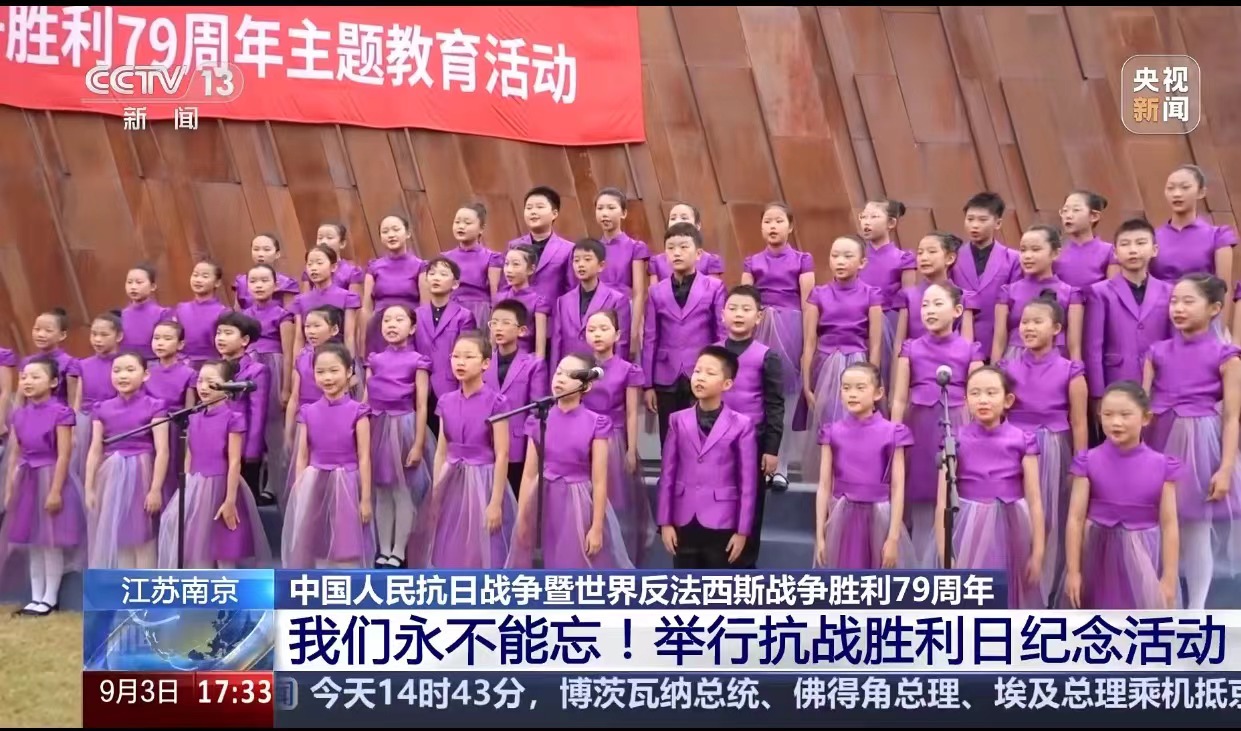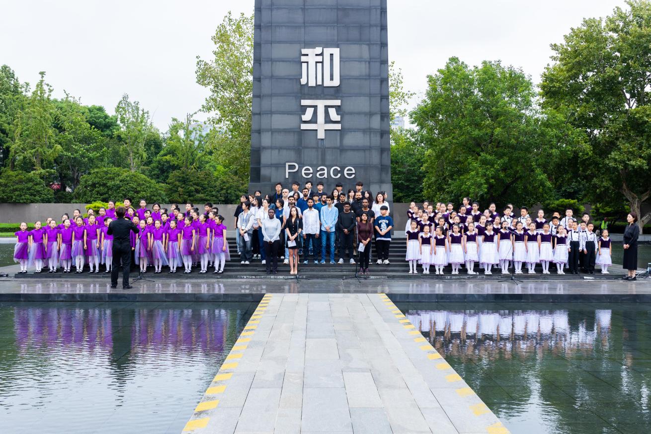 参加“唱响和平 播种未来”侵华日军南京大屠杀遇难同胞纪念馆2024年国际和平日主题教育活动。合唱团团员与来自11个国家的130多名中外青少年一起,以歌声传递和平愿景,播撒紫金草花种,铭记历史、共话和平!
