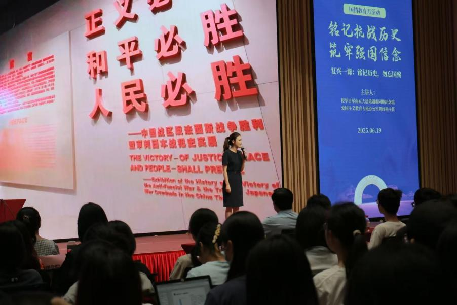 为深化爱国主义教育,赓续历史记忆,筑牢青年一代强国信念,6月19日下午,侵华日军南京大屠杀遇难同胞纪念馆爱国主义教育专班宣讲团赴广州暨南大学,为近300名师生带来《复兴一课》主题宣讲。此次宣讲是纪念馆拓展教育阵地、面向青年群体传播历史真相与和平理念的重要实践。