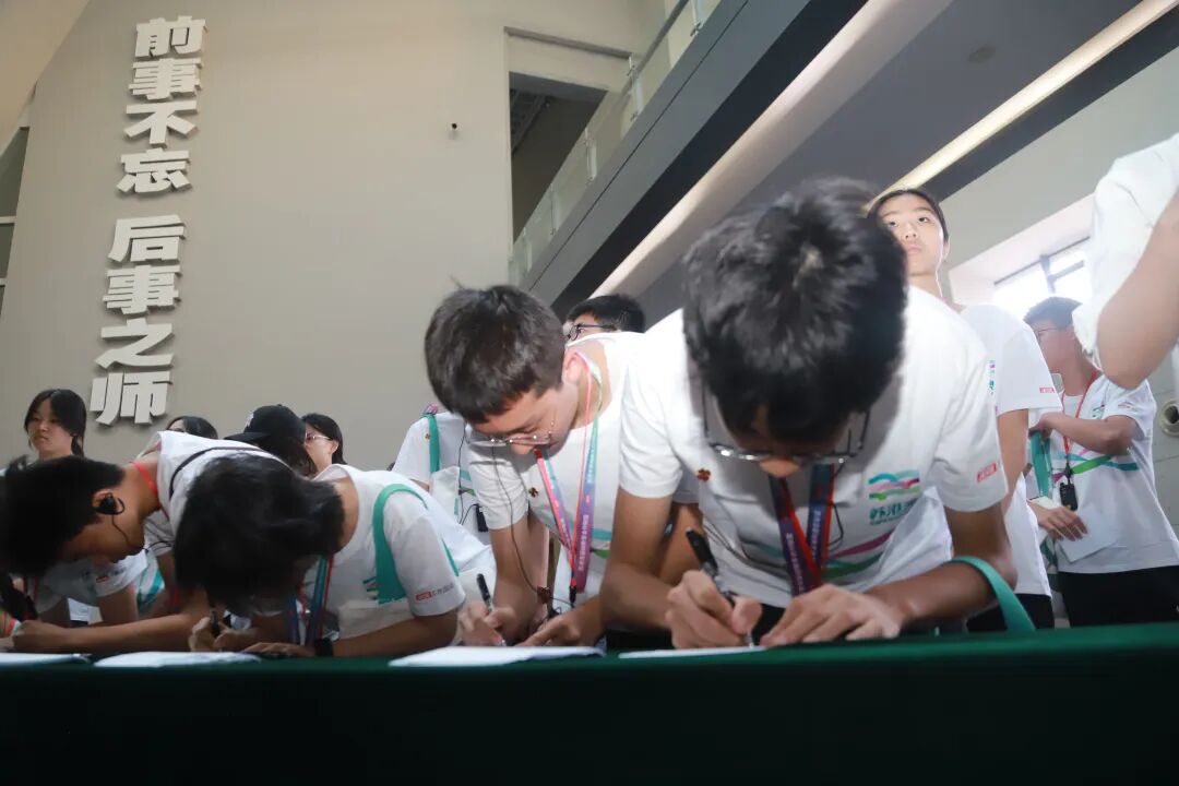 参观临近尾声,学生们纷纷驻足在和平鸽花语墙前,写下参观感悟。