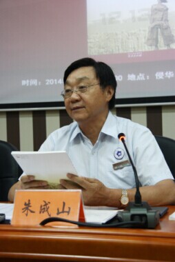 图为江苏省外宣办副主任、纪念馆馆长、南京大屠杀史研究会会长、南京国际和平研究所所长朱成山研究员授课