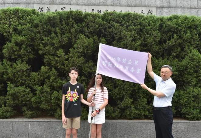 上午,夏令营开营仪式在我馆举行。朱利安·马吉和露比·马吉代表国际友人的后代,接受张建军馆长授予的“紫金草国际和平夏令营”营旗。