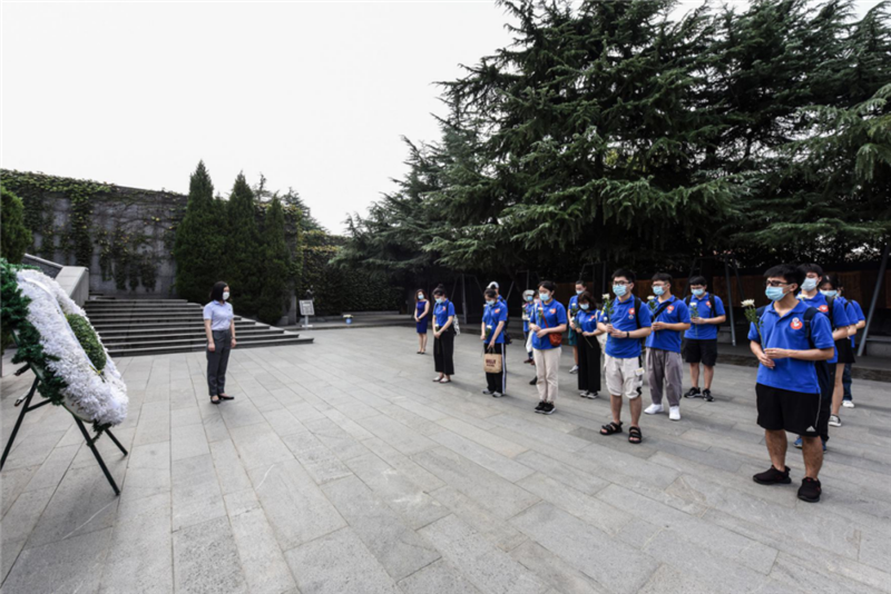下午两点,全体人员首先参观《南京大屠杀史实展》,随后在纪念馆悼念广场向死难同胞敬献了菊花。