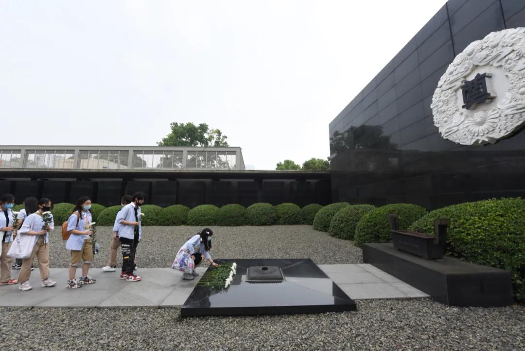 随后,学生们参观了史料陈列厅、“三个必胜”专题展区,并向南京大屠杀遇难同胞敬献菊花。