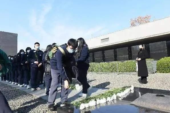 随后,学生们参观了史料陈列厅、“三个必胜”专题展区,并向南京大屠杀遇难同胞敬献菊花。