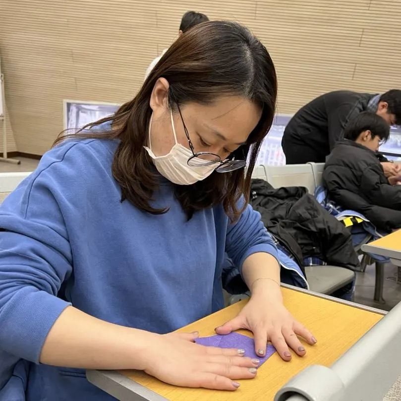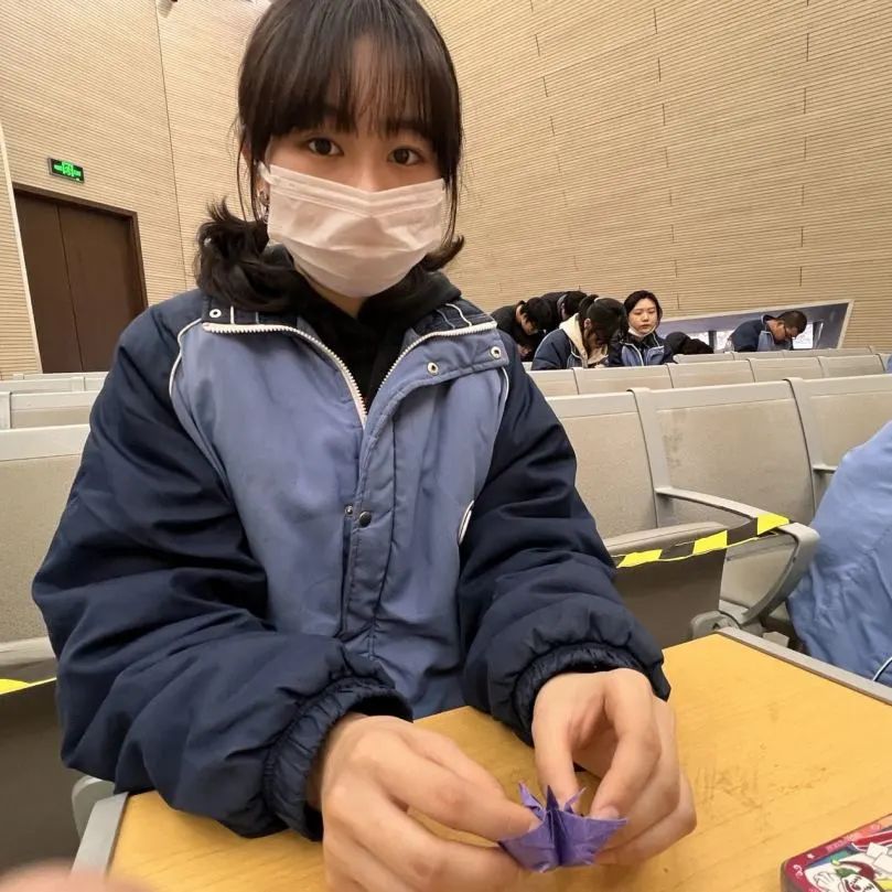 这次和老师、同学一起参加“行前一课”活动,非常有意义。一进去展馆,我就被各种装置和陈设所感染,仿佛穿越到了1937年的南京,让我体会到战争的可怕和残酷。我们学习折叠和平之花紫金草,喜欢这紫色的小花,希望它永远在我们心中盛开。