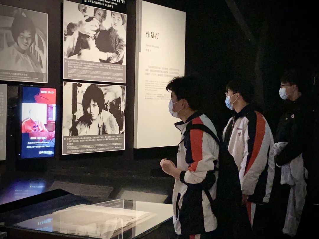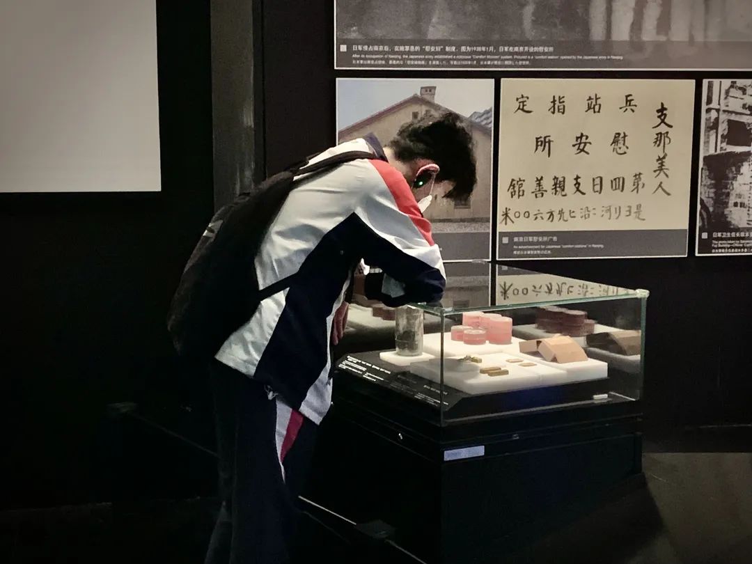 “我是邾永康,刚走进侵华日军南京大屠杀遇难同胞纪念馆,展厅的氛围一下子把我拉进了那段历史中。种种记载着证明日本罪行的照片、影像、文字资料在微弱的光线下,无声地诉说着真相。尤其是我看到史料陈列厅里巨大的“黑匣子”时(2007年我馆三期工程扩建时所发现的一个小型遗骨坑,我馆对其进行了原址原貌的展示。),我看到一副遗骸的头骨都碎裂了,不敢想象他当时受到了怎样的暴行。我听着纪念馆里播放着的对南京大屠杀幸存者的采访视频,回顾当年发生在南京惨绝人寰的历史。我深刻体会到了南京沦陷后普通百姓的绝望与无奈,深思和平来之不易。”