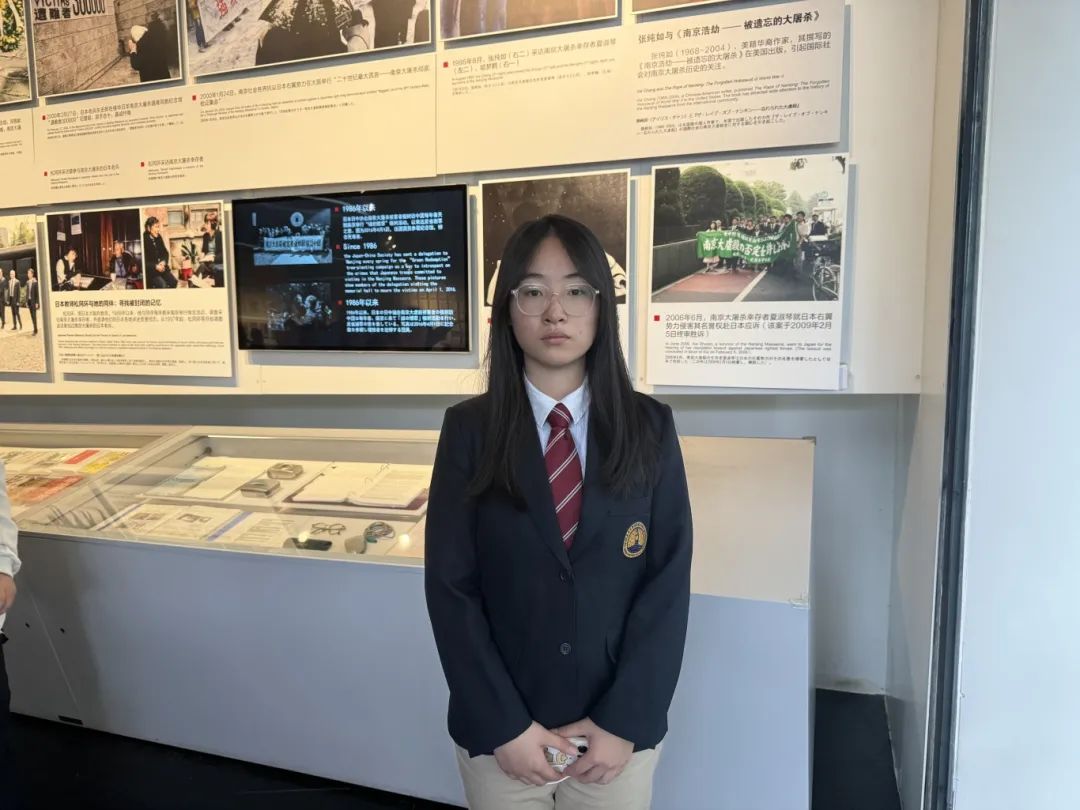 吴绪梓同学今年17岁,即将去美国学习历史专业。他说:“刚进入展厅时,墙上一排排的南京大屠杀历史档案映入眼帘,每一本档案背后都是一段痛陈心扉的悲剧,30万同胞们的生命都曾鲜活绽放过。感谢幸存者爷爷奶奶们勇敢地活了下来,成为活的历史书,告诉生于和平年代的我们,那段黑暗沉沉的往事。作为一名学习历史专业的学生,将来我也有可能会成为一名历史工作者,我会以张纯如女士为榜样,把这段历史向世界传播,以最通俗易懂的方式让大众知晓。”