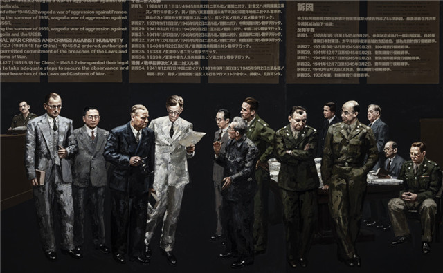 “为了更接近历史,我把法官群像、检察官群像等部分进行反复修改,让这一宏大叙事变成观看者能接受的面貌,让观众通过画作了解史实。”