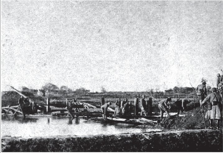 向南京进犯的日军部队在句容天王寺附近架桥