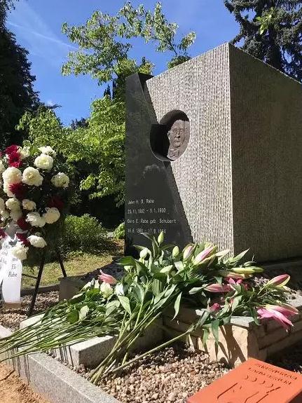 After Rabe's death in January 1950, his relatives buried him in the Kaiser Wilhelm memorial church cemetery on the western outskirts of Berlin. Since Germany has a deadline for cemetery use, Rabe cemetery has expired by 1985.
