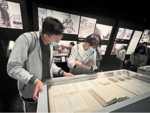 At 9 a.m., 12 student representatives divided into two groups rang the peace bell at the Public Memorial Square. Later, all the students visited Exhibition of Historical Facts on the Nanjing Massacre. Under the guidance of the narrator, they stepped into the deep historical memories.