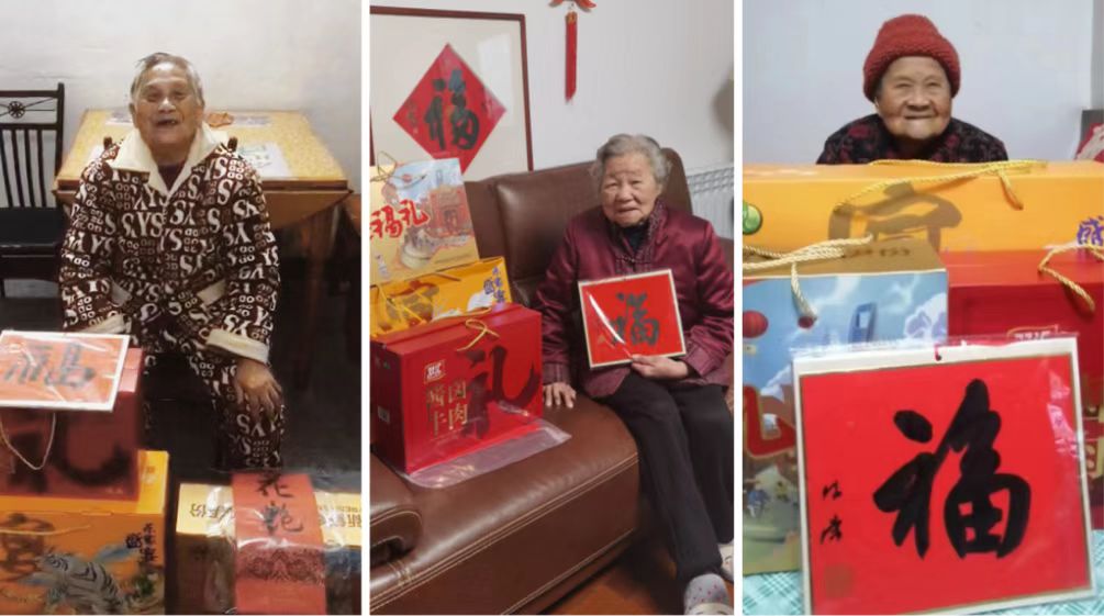 On the morning of January 20, Zhou Feng, director of the Memorial Hall, visited Xia Shuqin, a survivor of the Nanjing Massacre, and sent his Spring Festival greetings. Zhou inquired carefully about her physical condition, adding that she should take care of herself and contact the Memorial Hall if she has difficulties. Ahead of the Spring Festival, the Memorial Hall sent greetings to every survivor, purchasing Spring Festival goods for them and giving them couplets and “Fu” characters for them written by calligraphers from the Nanjing Calligraphers Association. The Memorial Hall wished the elderly good health, peace, and happiness!