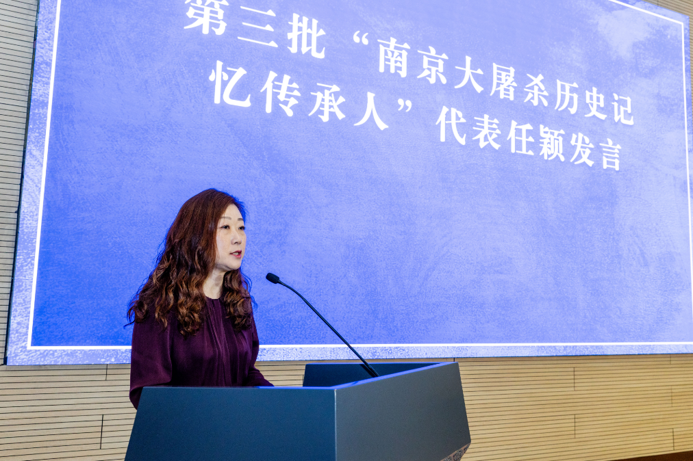 Ren Ying and her son, Yu Tianxiang, represent the family of survivor Xue Yujuan. Ren Ying is an instructor of elementary morality and rule of law at the Teacher Development Center of Yuhuatai District, Nanjing, and was involved in the compilation of the Readings of National Memorial Ceremony for Nanjing Massacre Victims (Elementary School Edition) - Memory of Blood and Fire in 2014.“I participated in the compilation of the National Memorial Reader to guide primary school students in understanding historical facts, fulfilling the mission of inheriting historical memory. In the future, I will explore more ways to share this history, helping more people understand the truth of the Nanjing Massacre,” she said.