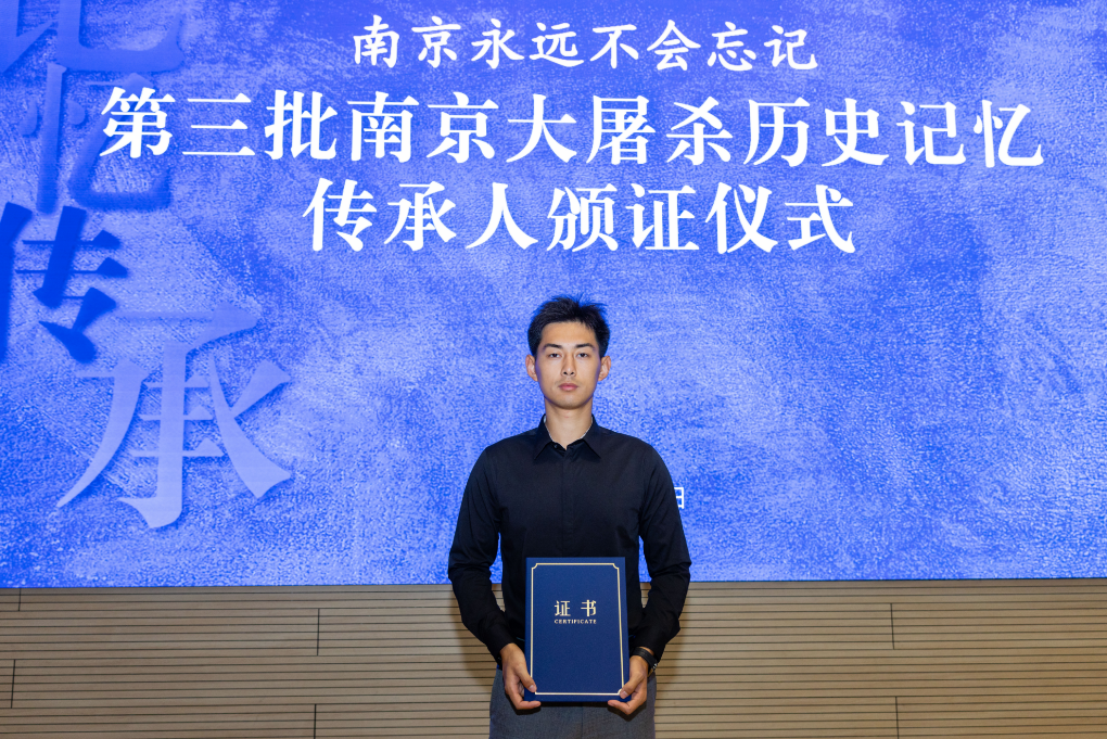 Jiang Bingchun, a "post-00s generation" college student, is the great-grandson of survivor Chen Guixiang who once traveled to Japan to testify at a historical rally. “Through video, I saw guilt for the past and admiration for the elderly in the eyes of Japanese youth.From that moment, the seed of spreading historical truth took root in my heart,” he said.Jiang Bingchun is currently studying Broadcasting and Hosting at Nanjing University of the Arts. He said that sound is a vital medium for preserving memory. “In the future, I will use my professional skills to share my great-grandmother’s experiences with more people, keeping history alive through my voice.”