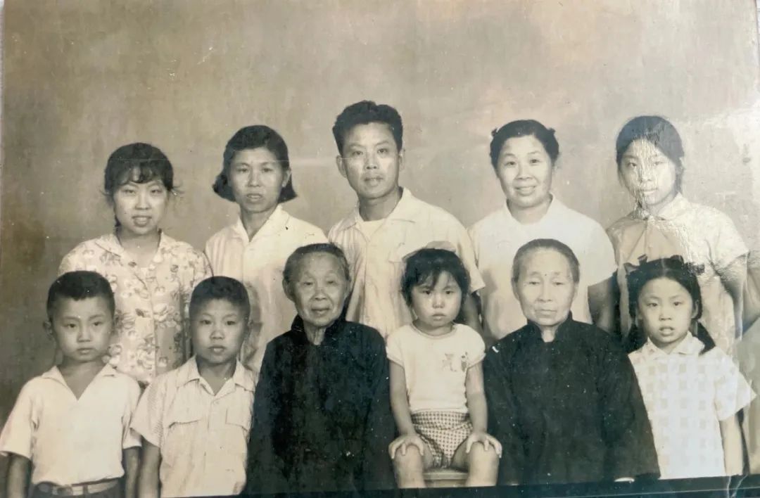 Xie Guiying in her youth (second from the right in the top row) with her family.