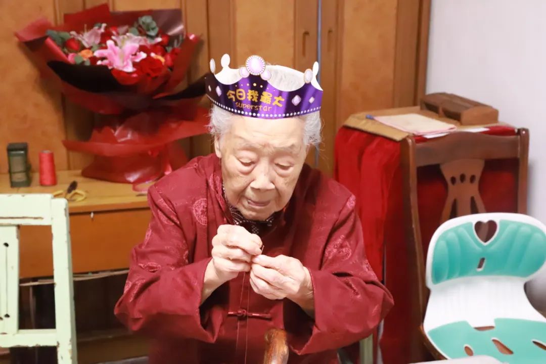 9月26日是奶奶的生日,南京市委宣传部副部长、纪念馆馆长周峰带队,上门为奶奶庆生。奶奶特地穿上去年重阳节参加生日会纪念馆为她准备的服装,早早地在家中等待。别看奶奶快100岁了,但仍然与时俱进,保持着对世界的好奇,积极面对生活,每天准时收听新闻广播,关心国家大事。