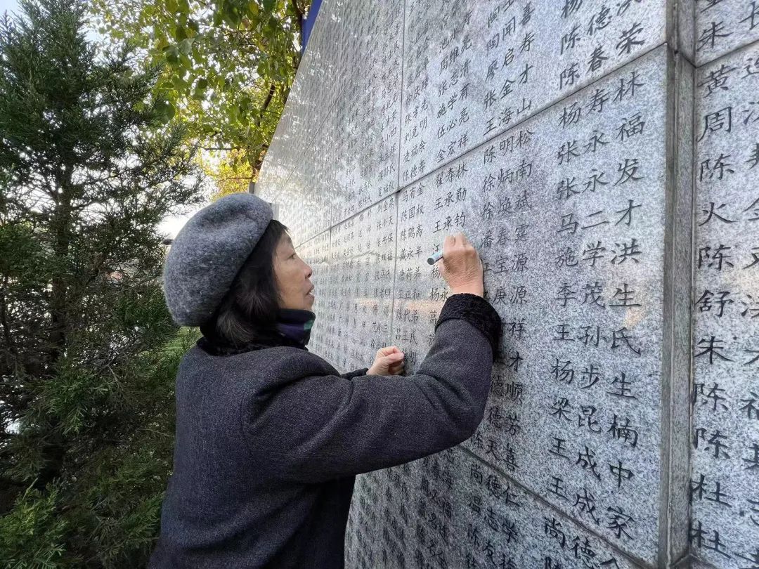 幸存者后代、南京大屠杀历史记忆传承人夏媛带着儿子参加活动,她说,“哭墙”上镌刻着遇难亲人的名字,为他们的姓名“描新”,让姓名以醒目的颜色出现在人们的视野中,也让这段历史时刻铭记在人们的心中。