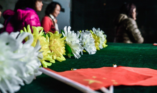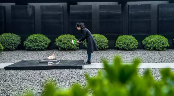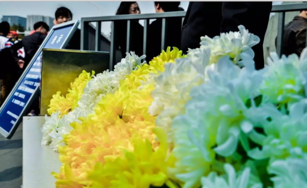 领取菊花后的献花地点均在馆内,共有三处,分别位于展厅内“遇难者300000”处,南京大屠杀遇难同胞名单墙下,以及后方祭场长明火处。