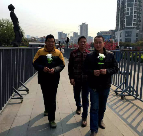 来自湖北的郑先生和他的朋友每人领了一枝绢花,他说:“我们都在建筑工地上工作,也不是什么高薪阶层,只是普通的工薪族,但来一趟南京不容易,参观这里更是多年的心愿。能帮助幸存者一点点,又能有菊花祭奠同胞,我们都觉得这样的活动很可贵。捐一点钱,表达我们的一点心意。”