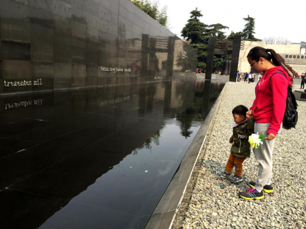 王艳松女士就是南京人,她不是第一次来纪念馆参观了,但这一次特别不同,因为这是她第一次带着她的孩子来参观。