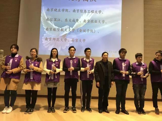获得2017年紫金草学雷锋优秀志愿集体的有南京晓庄学院、南京信息工程大学、南信滨江、东大成贤、南京农业大学、南航金城学院、南京师范大学。任京路处长为优秀集体代表颁奖。