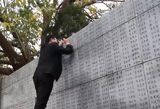 今年国家公祭前夕,南航金城学院的志愿者不畏寒冷,为遇难者名单墙上的姓名描红。