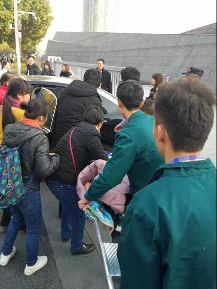 昨天下午,急救志愿者团队(身着绿衣)协助纪念馆工作人将一位高烧40℃的幼儿送往医院救治