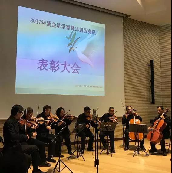 表彰大会现场,公益演出队演奏《紫金草之歌》