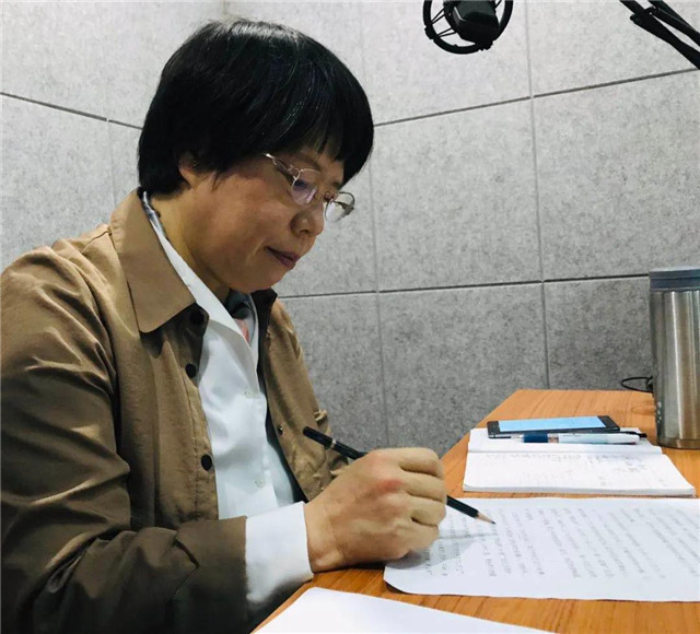 吉川淳子在纪念馆录音棚为我馆线上展览项目——“云游”纪念馆第四期稿件录音